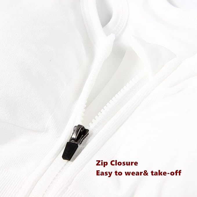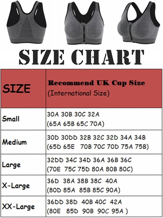 Feature: The zipper front closure is much easier to put on and take off. Anti slide zipper protect from sliding down when doing exercise. Protective layer of clothe covers the zipper on the inside to prevent scratching your skin.