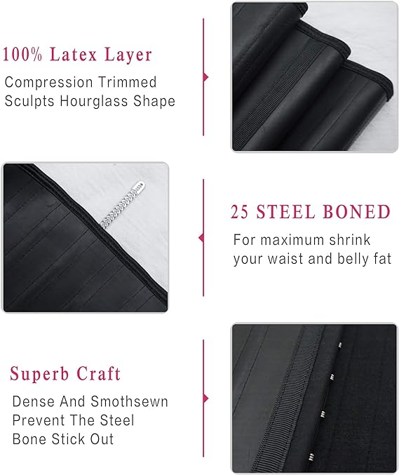 - ►Perfect fajas colombians girdles for women: this design of waist trimmer is not adjusted by long rope or belt in the traditional steel boned waist training corsets, therefore the latex waist trainer can avoid all the awkward moments with the tracks on the back. The women corset also can be wear under clothes and dresses in the daily whenever go to a party, work or a gym.And more importantly, the waist trainer corset for women suitable for any occasions