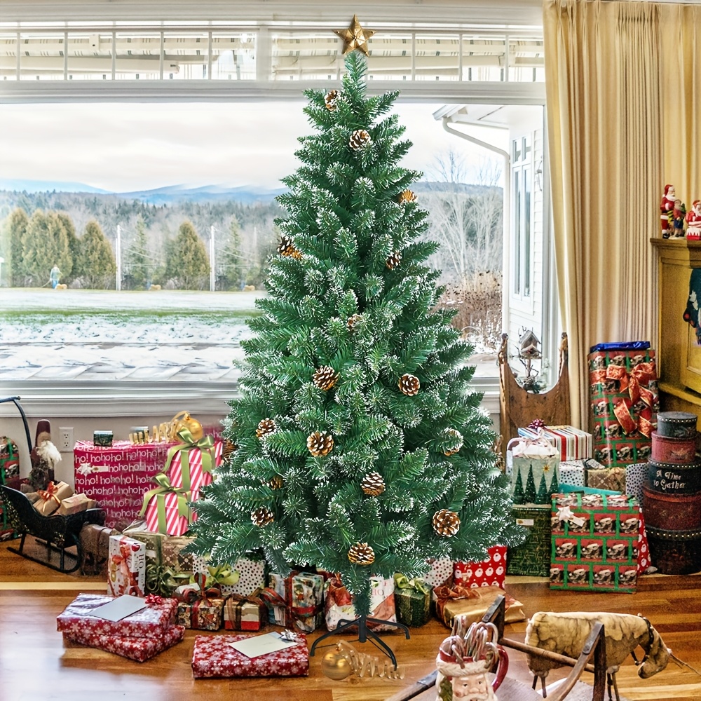 Artificial Christmas Tree with Snow Effect – Pine Cones & Metal Stand