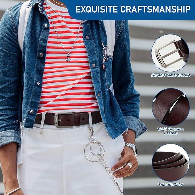 • 100% Premium Cowhide Leather: Crafted from high-quality cowhide leather, our belts are thick, soft, and durable, offering exceptional comfort and long-lasting wear for daily use.