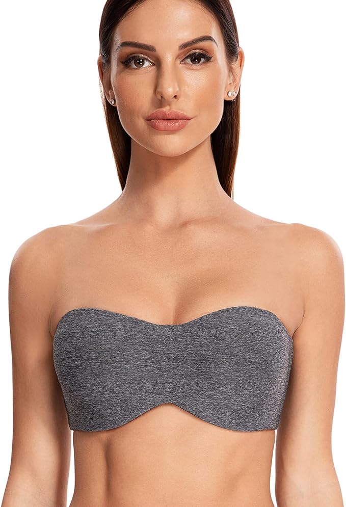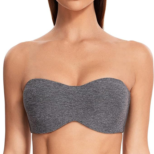 MELENECA Plus Size Strapless Bra, Minimiser, Unpadded Underwire, Transparent Straps, for Women, Grey Heather, 34E