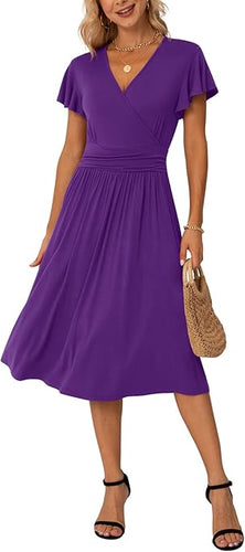 GRECERELLE Womens Summer Wrap Dress Ladies Casual Ruffle Short Sleeve V-Neck Floral Beach Dresses for Women (04 Purple, XL)