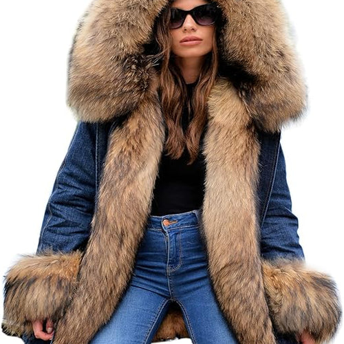 Aox Women Winter Faux Fur Hood Warm Thicken Coat Lady Casual Plus Size Parka Jacket Outdoor Overcoat (20, Denim 2039)