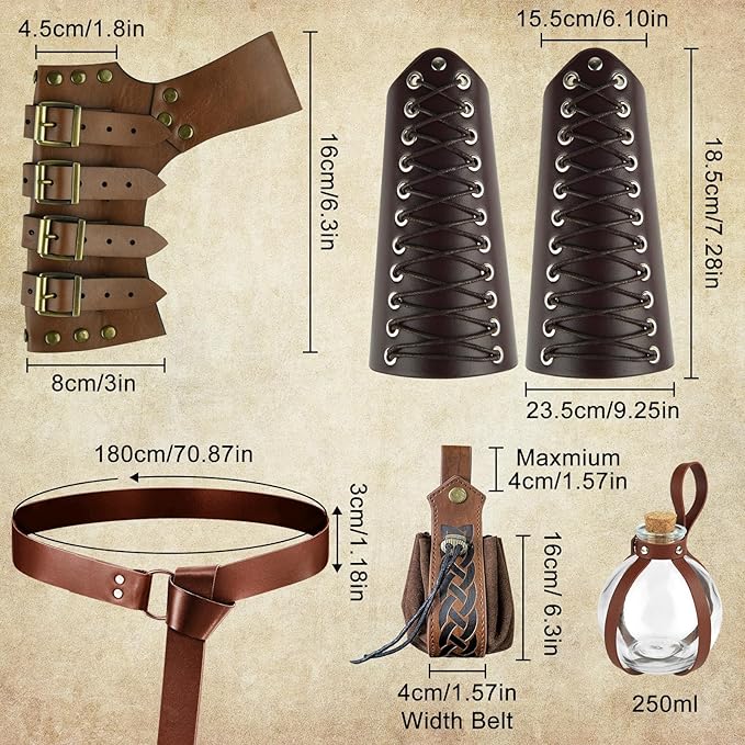 - Renaissance Costume Set: You will receive 1 x retro medieval shirt, 1 pair of renaissance pants, 1 x purse, 1 x medieval belt, 1 x potion bottle, 1 x bottle holder, 1 x sword frog, 2 x buckle bracers, in total 9 pcs, enough for you to match the knight outfit