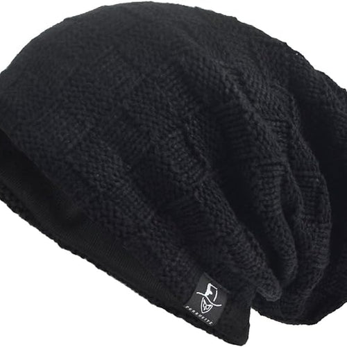 VECRY Mens Slouchy Knit Oversized Beanie Skull Caps Artistic Hats (Plaid-Black)