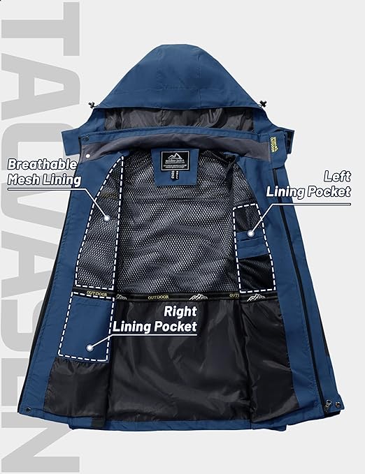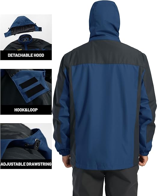 • Detachable Hood - windpoof zip hood with adjustable drawstring, the hooded jacket's hood can be removed by zipper to be a stand-up collar jacket