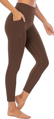 OVRUNS High Waist Gym Leggings for Women Yoga Pants with Pockets Workout Running Compression Leggings for Women - Brown - S