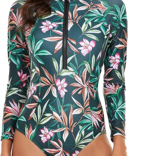 【Size Description】Please refer to the size chart and size description(Unit:cm).①S/UK 6-8:Bust 82-86,Waist 60-70,Hips 82-92;②M/UK 10:Bust 87-90,Waist 64-74,Hips 84-96;③L/UK 12-14:Bust 91-95,Waist 68-78,Hips 90-101;④XL/UK 16:Bust 96-100,Waist 72-84,Hips 94-106;⑤XXL/UK 18:Bust 100-105,Waist 78-88,Hips 98-111.One inch=2.54cm【Style Introduction】Women's One Piece Printed Swimsuit.Front zip.High stretch fabric.Ultraviolet Protection Factor(UPF50)【Design】Without underwire.Removable Chest Pad.Unique print design,elegant and charming【Features】Soft,breathable,quick-drying fabric for maximum comfort【Occasion】Perfect for surfing,swimming,beach,yoga,exercise and other outdoor sports.
