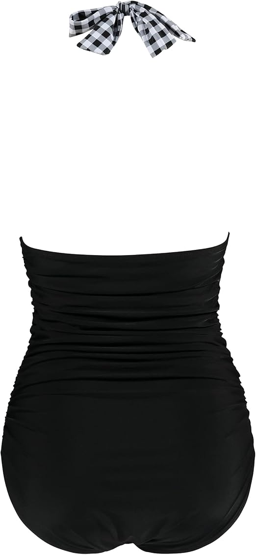 RXRXCOCO Halter Neck Tummy Control Swimsuit Women One-Piece Ruched Non Padded Swimming Costume