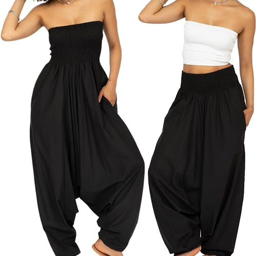 - CONVERTS TO PARACHUTE STYLE HAREM PANTS - Freely choose another matching top from your wardrobe and pull the top down to your waist to transform the full-length jumpsuit into genie boho pants, no need to over-pack for your next holiday
