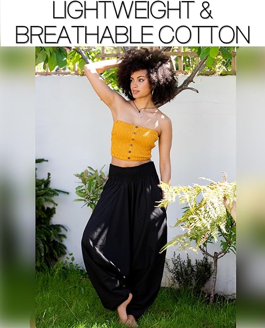 - FASHION FORWARD YET COMFORTABLE - This harem jumpsuit for women is a perfect outfit if you are lounging around or even if you have a semi-formal event to attend with its airy and cotton material and loose fit, easily your go-to everyday outfit