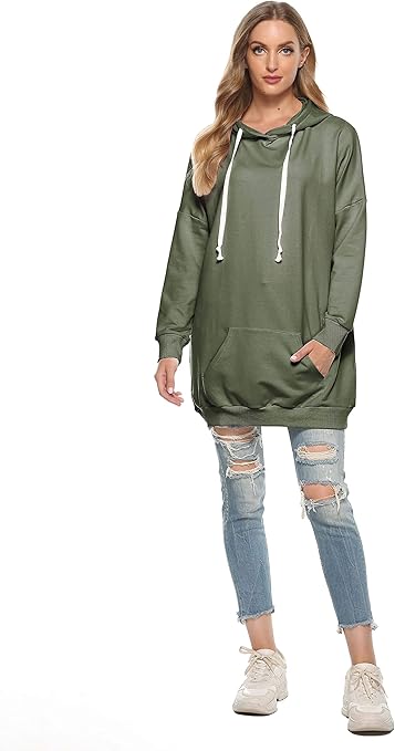 Famulily Womens Hoodies Casual Oversized Plain Long Hooded Sweatshirt Tunic Tops with Pockets Army Green M