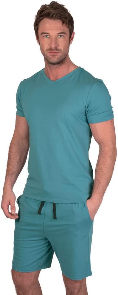 • Supersoft Cotton Modal Mens Pyjama Set: A Luxurious Mens Pyjama Set Comprising A V Neck Pyjama Top T-Shirt And Matching Pyjama Bottom Shorts In Luxurious Cotton Modal & Elastane Fabric.