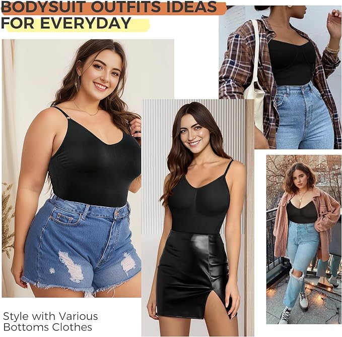 🩱 【 Sizing Tips 】If you'd like a slimmer fit, order a size down. Upon first try-on, you might be shocked by how "small" the bodysuit appears. But no need to worry —This full body skims women's shapewear bodysuits for women is made of top grade polyester & spandex fabrics, it's super soft and stretchy, lightweight and breathable. It will hug you in all the right places! Note : Please wear it from the bottom up for better fit and experience.🩱 【 360° Seamless Tummy Control Shapewear Bodysuit 】The seamless shapewear for women tummy control has a special body slimming design effect that is ergonomic. Waist trainer for women use special seamless designs around the middle and waist part, bring more compression than other bodysuit. Wearing this seamless bodysuit shapewear for women to hide your bumps in the back or abdomen , tighten the fat on the sides of your body, and instantly show your slim curve without any panty lines.🩱 【 Soft & Comfortable Daily Full Body Shapewear 】This thong shapewear tank tops for women can be wear outside directly, not only it’ll be your favor summer tops, but also can be invisible underwear bodysuit to keep a good body shape in all seasons. Prefect match with dress, jeans, pants, shorts, skirt etc. This waist slimming girdles for women is suitable for weddings, postpartum, work, travel, leisure, sports and fitness, party, fashion show, gym, night out and daily life.🩱 【 Butt Lifting Shapewear 】The buttocks area of this butt liftng shapewear are designed with strong push-up butt support, effectively shaping the C-curve of the waist and hips, make your buttocks looks more bigger, sexier and charming. The crotch of this tummy tucker shapewear for women has 3 hooks closures that adjust to fit your body perfectly whether you have a long torso or a short torso. It"s very convenient to go to the bathroom without having to take off all your clothes.🩱 【 V Neck & No Compression Bra 】 The chest area of our waist cincher shapewear adopt breathable stretch fabric and V neck typical style, which will not flat your breast and can be well-groomed your shape of neck, breasts, and face. No chest pad, steel bones and wires, so that you can wear your favorite bra, it's suitable for most breast cups. Besides, the womens shapewear with adjustable shoulder straps help adjust its degree of tightness, and provide the support for the no padded bra.