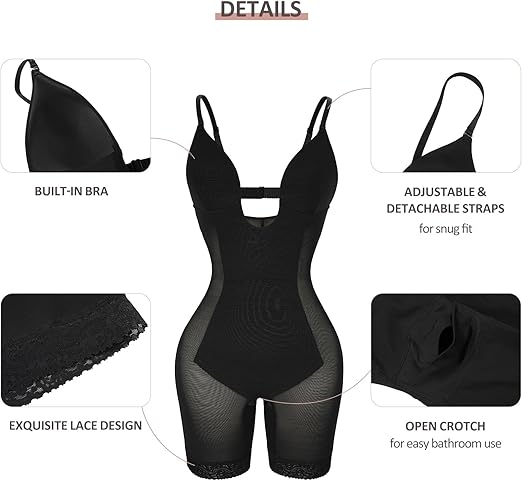 • CONVENIENT USAGE & NO ROLLING: Featuring a special open crotch design, our shapewear makes bathroom visits hassle-free without the need to remove the body shaper. The highly elastic lace fabric is particularly flattering to the thighs, preventing any discomfort or embarrassment caused by fabric rolling up. We offer both beauty and convenience, leaving you responsible only for your beauty.
