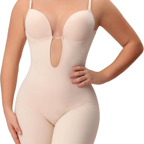 - SUITABLE FOR ANY OCCASION AND SEASON: The full body shapewear suitable for any body proportions,great for weddings,Christmas,New Year,birthday party,dating etc.The shaping bodysuit for women has a variety of ways to wear, you can wear it under any clothes, such as blazer,cami tank top, wedding dresses etc.Our deep v low back bodysuit looks stylish and versatile. It is one of the essential items for every elegant woman's closet!Get a SLIMERS body shapewear for women,you'll never regret.