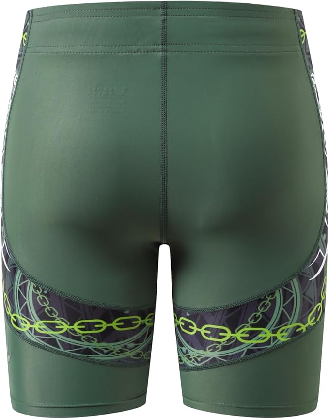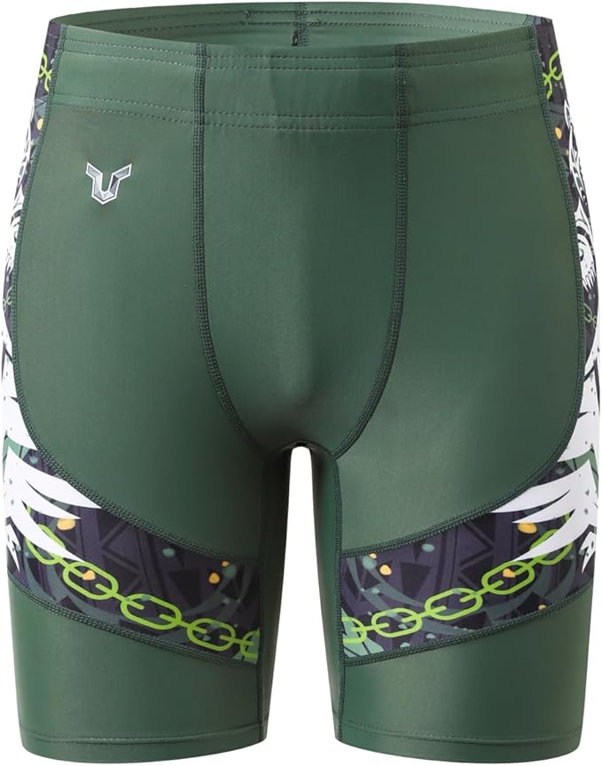 HUGE SPORTS Men's Splice Swimming Shorts Compression Jammer Long Wild Series, Bear Green, XXL