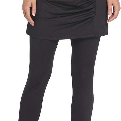 Westkun Women's Leggings with Skirt Ankle Length Running Trousers Tennis Skirt with Pockets Yoga Sports Soft Skirt Trousers Tennis Clothing 2-in-1, Black-Ruched, L