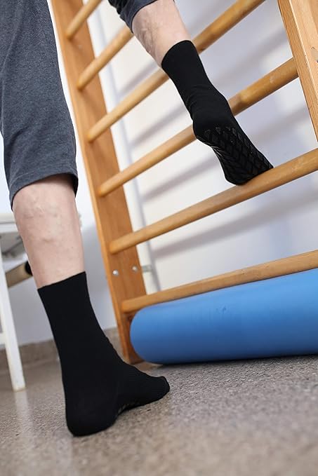 - NON-BINDING ABS SOCKS FOR WOMEN AND MEN - Specially designed cotton socks with a non-binding cuff providing wearing comfort and free blood flow with no compression. The non-slip ABS system allows the foot to feel stability even on slippery surfaces. We especially recommend these socks for people with oedema and leg and foot swelling as well as for those who have blood circulation problems and would like to feel comfortable with no shoes on.