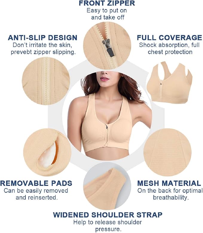 - ✔Full coverage sports bra with a full-length frontal Zip design, show sport fashion; The removable chest pads are easy to clean and very hygienic.Compression bra designed for medium to high impact activities exercise