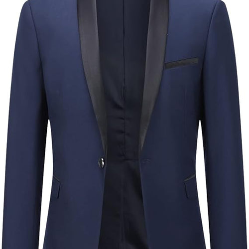 YOUTHUP Men's Blazer Shawl Collar 1 Button Slim Fit Formal Suit Jacket Wedding Prom Party Jacket,Navy Blue,XXL