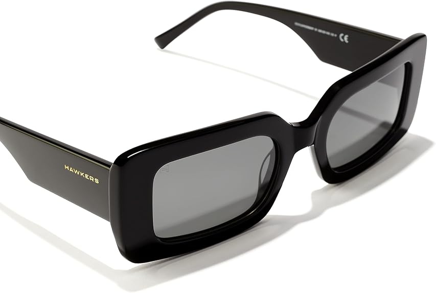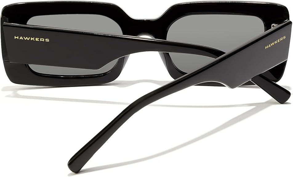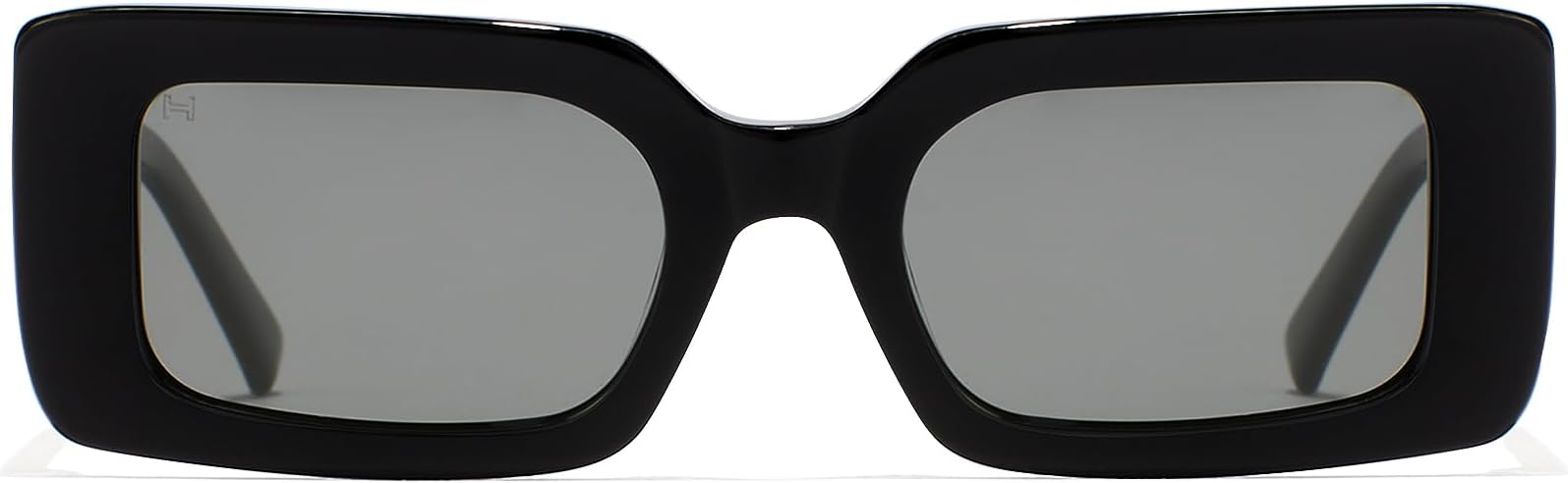 - Total black rectangular sunglasses with polarized lenses. With a slim chunky silhouette, this design made of high-quality acetate and inspired by the 90's rave scene has become a true statement that claims street codes season after season.