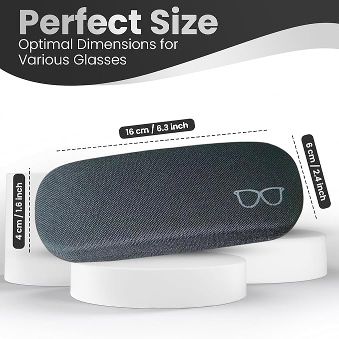 • ✅ Glasses Case Suitability: Our large glasses case measures 15x6cm/5.9x2.4inch. The ideal size for your ordinary spectacles, reading glasses, sunglasses and an ideal mens, women and kids glasses case.