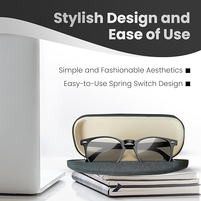 • ✅ Linen Clothed Case: Our Black glasses case has a soft linen cloth covering on the outside surface. The Inside is soft and we provide a protective cleaning cloth. Our Glasses Case box is a classic design. Our Glasses case hard shell protects the glasses for you!
