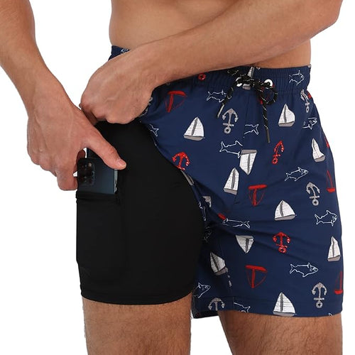 【New Breathable Compression Liner】Arcweg swimming short has a silky smooth compression lining which is lightweight soft and Breathable.The new liner is supportive for all day wear helps protect your private part more than traditional itchy mesh lining.【Quick Dry&Skin-Friendly】Outer Shorts:95% polyester 5% spandex.Compression liner:90% nylon 10% spandex. Arcweg swimming trunks with water repellent technology, dry fast and superior light weight fabric. Due to water-repellent feature, It can easily get up from the water, dry quickly from the wet, suitable for all water sports or holiday beach activities.【Multi-pocket Design】Arcweg men swimming shorts have two front side zip pockets, 1 hidden built-in pocket and one back pocket and grommet to let water drain.Practical side pocket, Both mesh pockets with invisible zipper, And the side seam pockets adopt mesh fabric to facilitate water and sand drain quickly. The lined phone pocket is a good size and fits the body well.【Elastic Waistband with Drawstring】Beach short with an elastic waistband and an adjustable drawstring.You can flexibly adjust your waistline to make sure your beach shorts will not slip down so that you can enjoy a better beach time.【Multiple Occasions】Multi-color optional, we provide you with a variety of colors mens bathing suit to match your sports.Arcweg swim trunk is Ideal for various outdoor and indoor sports, beach, surfing, swimming and also suitable for aerobic exercise such as gyms, lined shorts also have good sweat-absorbing function, mens swim trunks which is a great choice for sports and fitness.