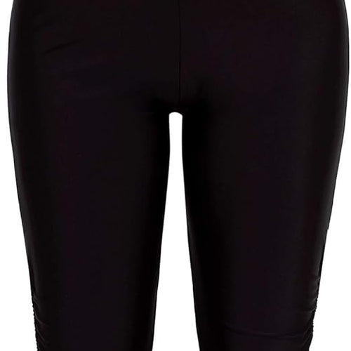 ECUPPER Womens Swimming Leggings Shorts Knee Length Capris Swimsuit Pant Plus Size Swim Bottoms, Black, L