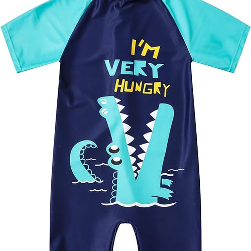 Ewbob Boy Swimsuit Sun Protection Short Sleeve Bathing Suit Kids Crocodile All in One Piece Swimwear Ages 18 Months to 6 Years Swim Costume for Swimming Lessons, Beach and Pool, 4-5Y