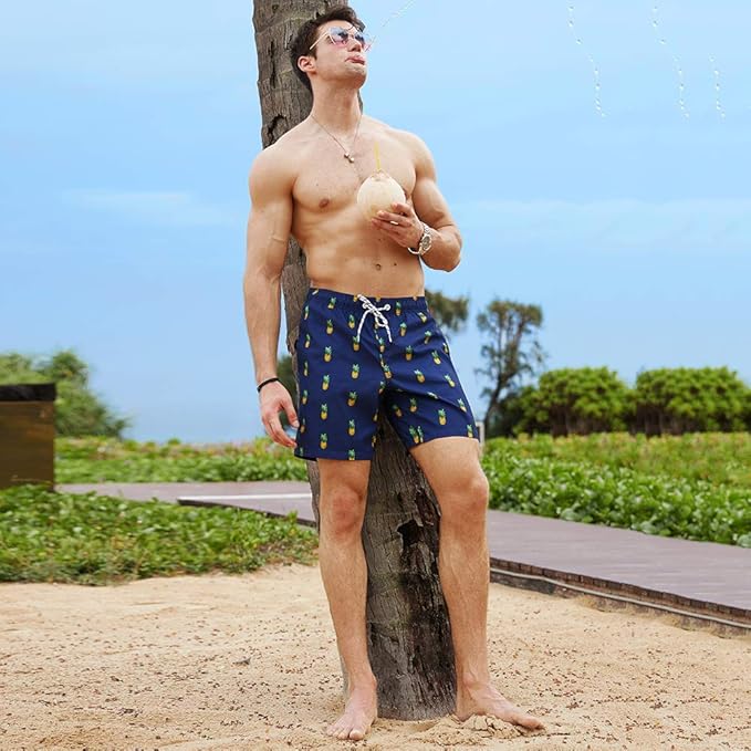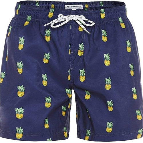 MaaMgic Mens Quick Dry Pineapple Swim Trunks with Mesh Lining Swimwear Bathing Suits, Navy Blue1, XX-Large ( Waist:37 inch-39 inch )