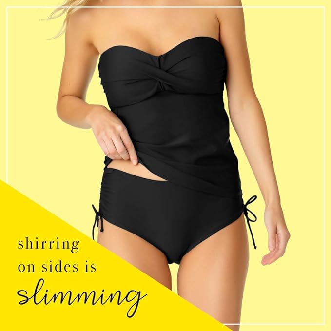 FIGURE-FLATTERING TANKINI TOP: This fitted bathing suit hugs your curves in all the right places, accentuating your body by creating a lovely hourglass figure.FULL SUPPORT: With this swimsuit's sewn-in molded cups, you'll get total support for your bust. For supportive swimwear, trust Catalina.CUTE & STYLISH: Whether you're swimming at the beach or tanning by the pool, this bandeau top will carry you throughout all your fun adventures.REMOVABLE STRAP: This swimsuit comes with a removable strap, allowing you to easily adjust it to your needs. The strap is also adjustable, so you can set it to the length you like. Remove straps for tanning.COMFORTABLE SWIMSUIT: This bathing suit top has pull-on closure, so you can easily put it on and take it off. It's made from 82% nylon and 18% spandex for supreme comfort.