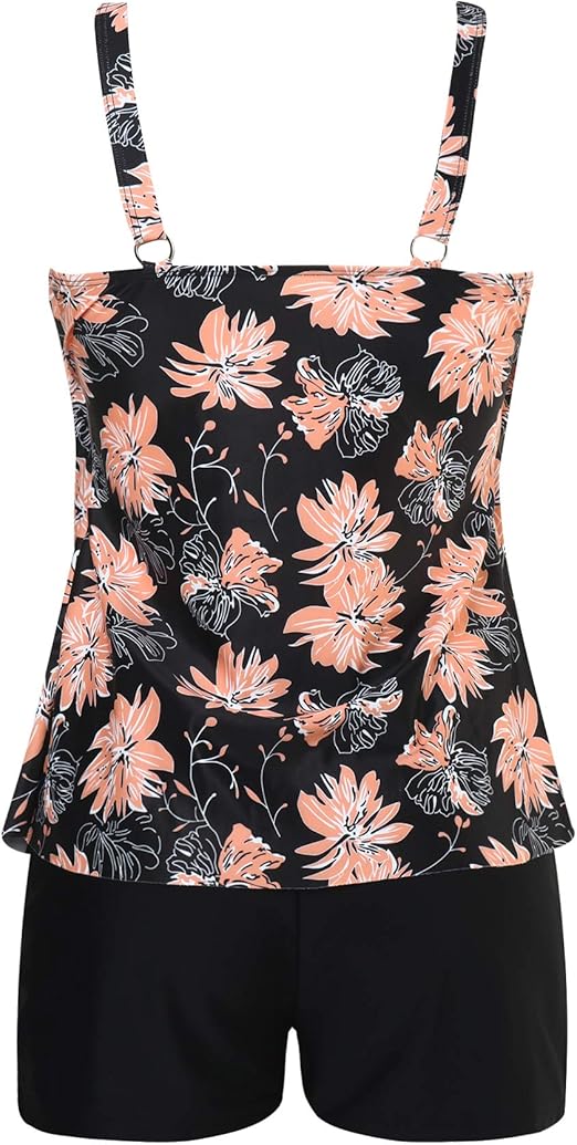 The flounce front of the tankini top looks lovely, with adjustable shoulder straps plus internal removable pads to suit all kinds of bodies, making you more comfortable to wear.Tankini with Boyshort allow you to move freely and control your tummy, making you look attractive and enjoy your time.Good quality fit great,you will definitely not feel self conscious sitting in this summer.Size L=14-16, XL=18-20,XXL=20-22,3XL=22-24,the plus size swimwear.Perfect for party, tropical vacations, summer, holiday ,pool & beach.