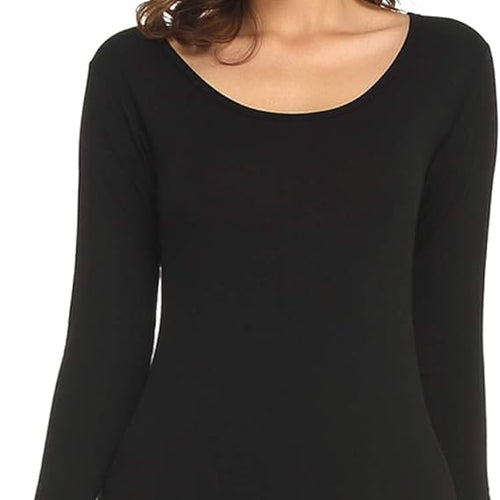 Mcilia Women's Ultrathin Modal Round Neck Long Sleeve Thermal Top/Shirt Black Medium (UK Size 12 14)