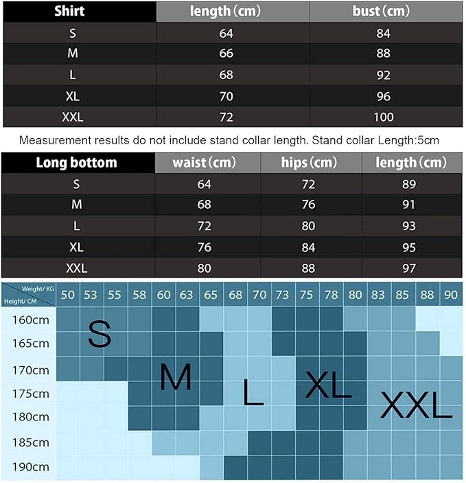 POLYESTER & SPANDEX fabric. Four-way stretch provides a comfortable active base layer fit.2PCS SET: Thermal Underwear set: 1 long sleeve top + 1 full-length bottom; Single-layer without fleece lining--lightweight (Approx 0.36kg/0.79lbs), Thin, stretchy, soft without too bulky; Ideal for spring autumn winterMain Features:1. Double stitching cuff and neckline (crew neck). 2.Flat lock seams to prevent chafing and irritation.3.Excellent moisture control, such as wicking away sweat, quick-drying, and odor-resistantWide application: 1.Mens Thermals Base Layer Great to be Wear Alone at Home or Add an Extra Layer of Warmth Under Your Clothes; They can be worn as comfy pajamas on cold, chilly nights; 2.Cold weather mens thermal gear for active sports like hiking bike motorcycle cycling snowboard skiing or military & tactical games or hunting and fishingGarment Care: a.Slightly tight-fitting: Purchase 1-sizes larger if you like a somewhat "snug fit" b.Usually, all thermal underwear need to be cleaned often because they are so close to your body