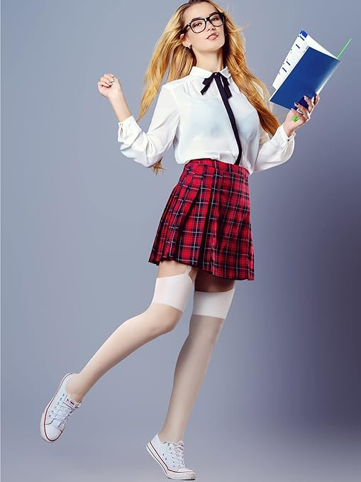 Transparent Design: the stockings for women suspender are transparent, which will show women's body shapes, and take on their charming temperament well, quite suitable for parties, makeup or dress up parties, proms, beach parties, night club and more 2Sets for Replacement: you will receive 2 sets of suspenders and stockings for women in white and red, enough quantity covers your needs for daily wear or outfit matching, washing replacement and moreQuality Material Selection: made of quality nylon and spandex materials, our stockings and suspenders set is soft and resilient, stretchy and elastic, strong enough against breakage, tear, wear and fading, serving you for a long timeOne Size: the garter belt and stockings set comes in a one size, which fits most women and teenage girls; They don't feel too tight or too loose, and they don't come off easily from your legsEasy to Match: the stockings and garters are designed in assorted colors, and you can choose the right style according to your dress style, easily match different clothes, so that you look beautiful and elegant