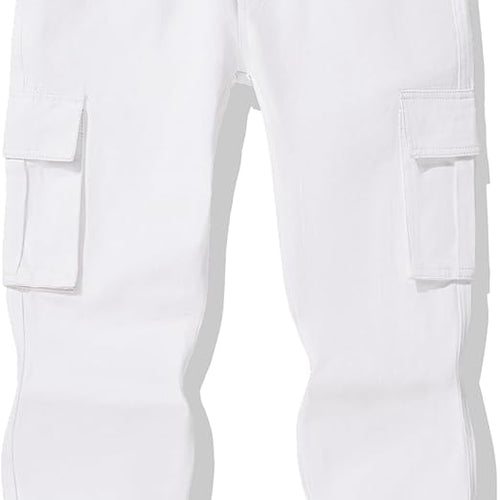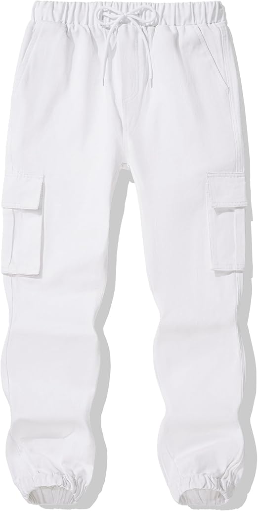 Auranso Boys Cargo Trousers 12-13 Years Kids Elasticated Waist Joggers with Drawstring Outdoor Casual Pants White
