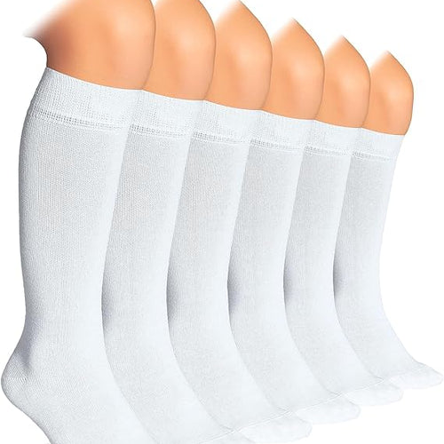 Truebuy® Back to School Kids Girls White Plain Knee High Socks 3 Pairs Long Smooth TrThigh Grip Knitted Cotton Rich Socks UK12-3