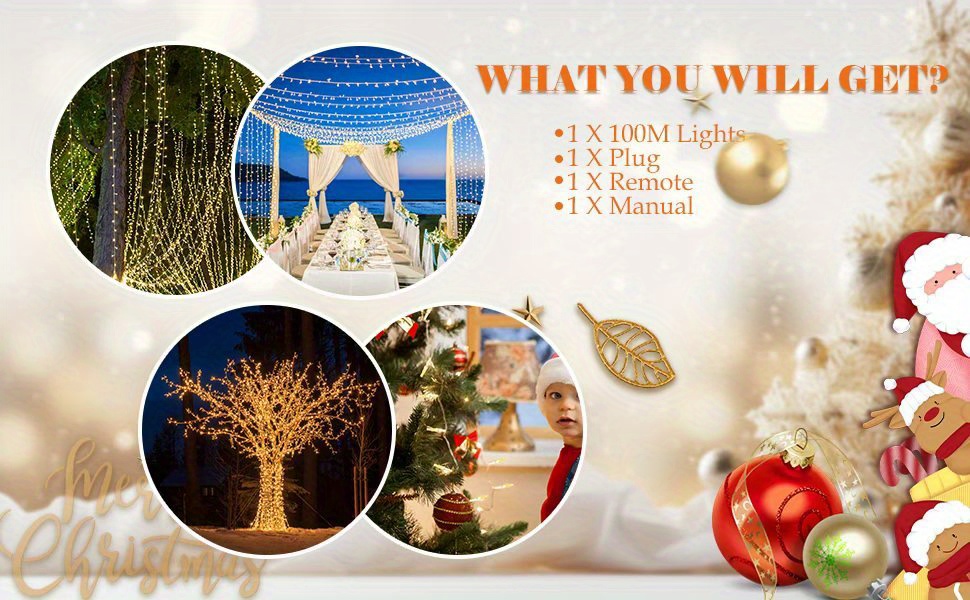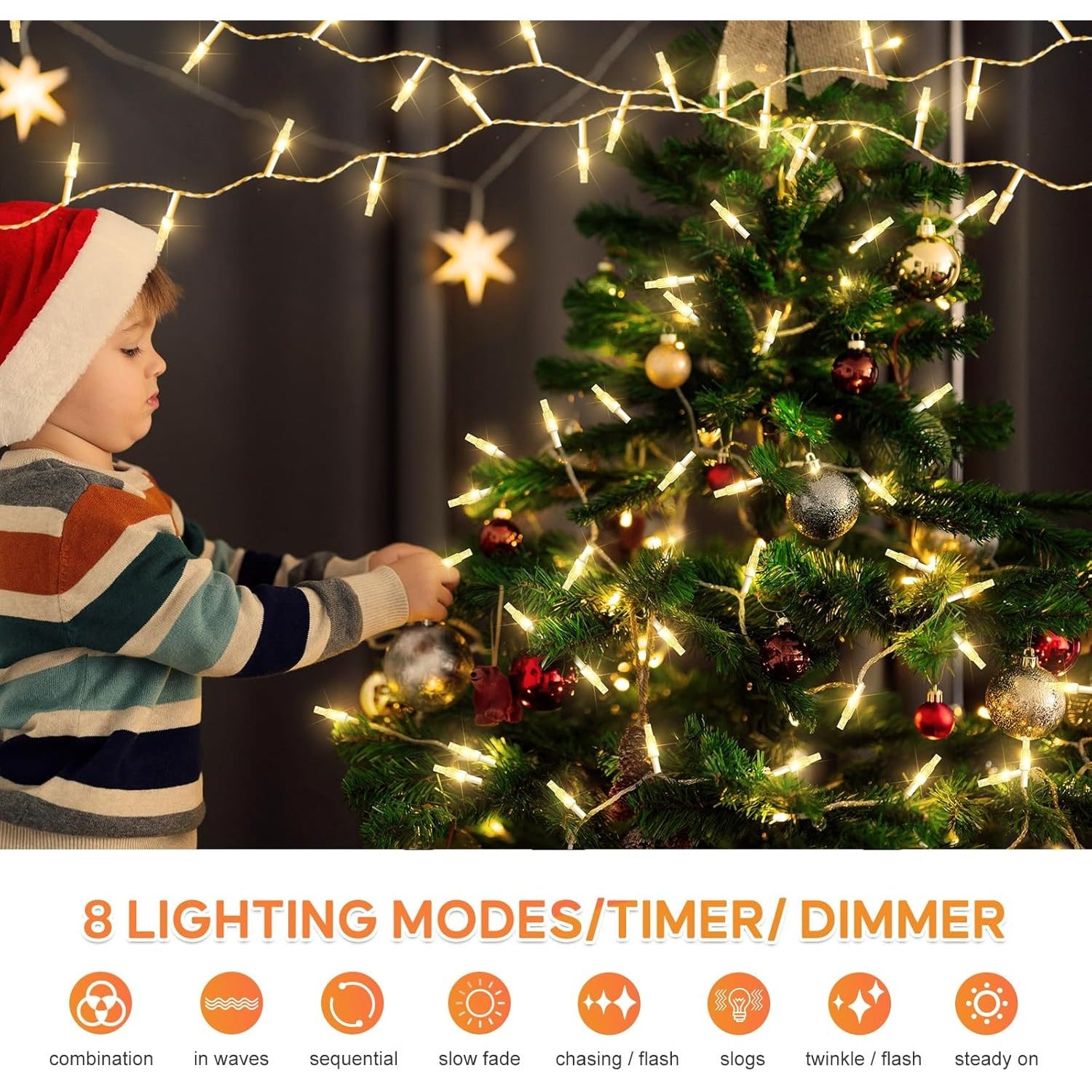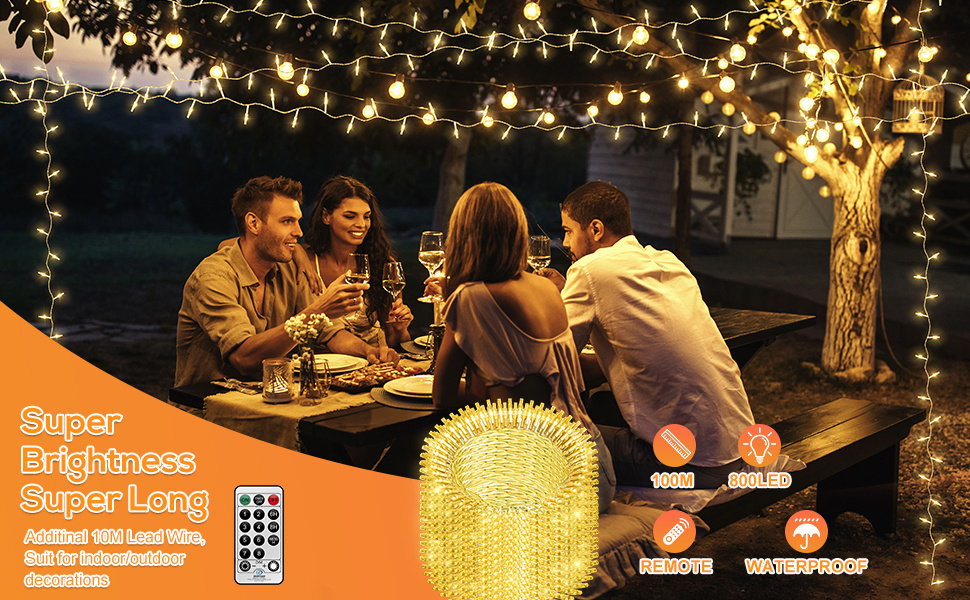 100m 800 LED Outdoor Christmas Fairy Lights – Warm White, Remote, Timer, 8 Modes