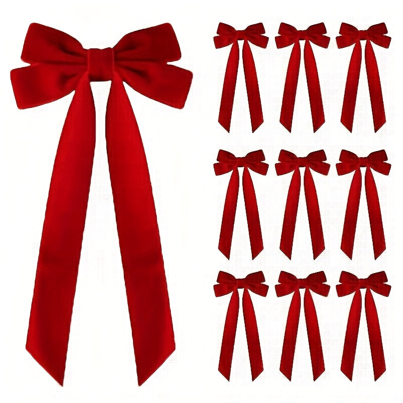 10Pcs Burgundy Red Velvet Christmas Bows – Tree, Wreath & Gift Decorations