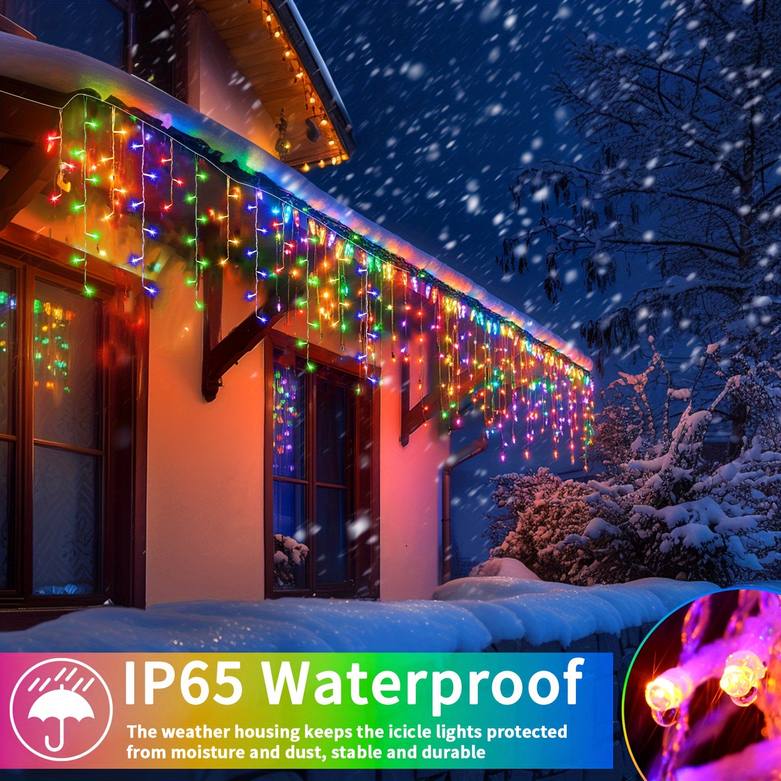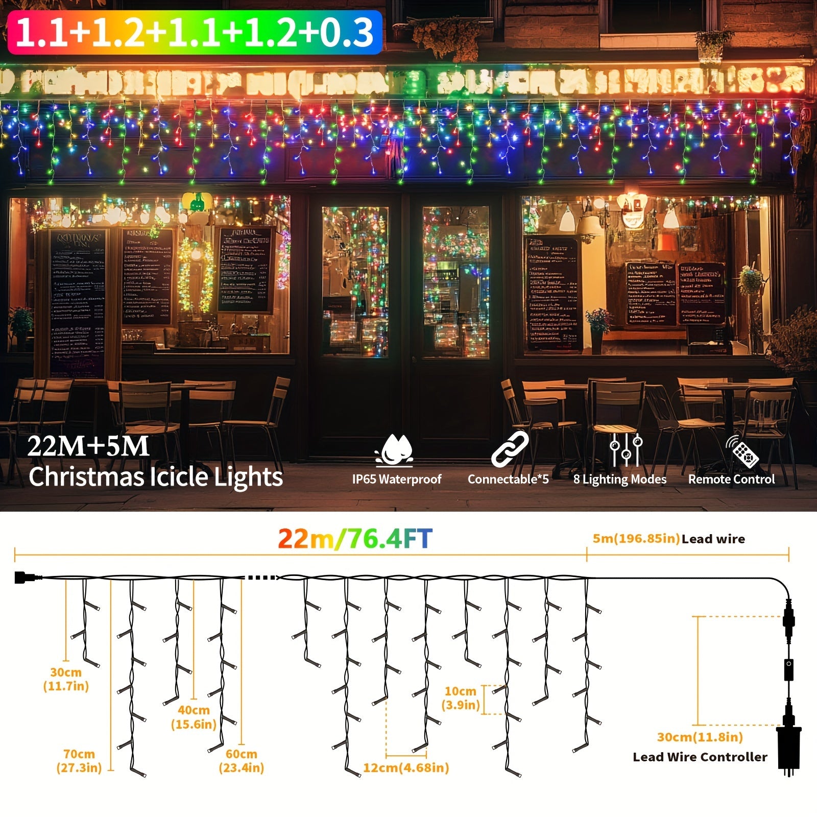 23.29m 780 LED Icicle Lights – 8 Modes, Timer, Remote Control, Connectable