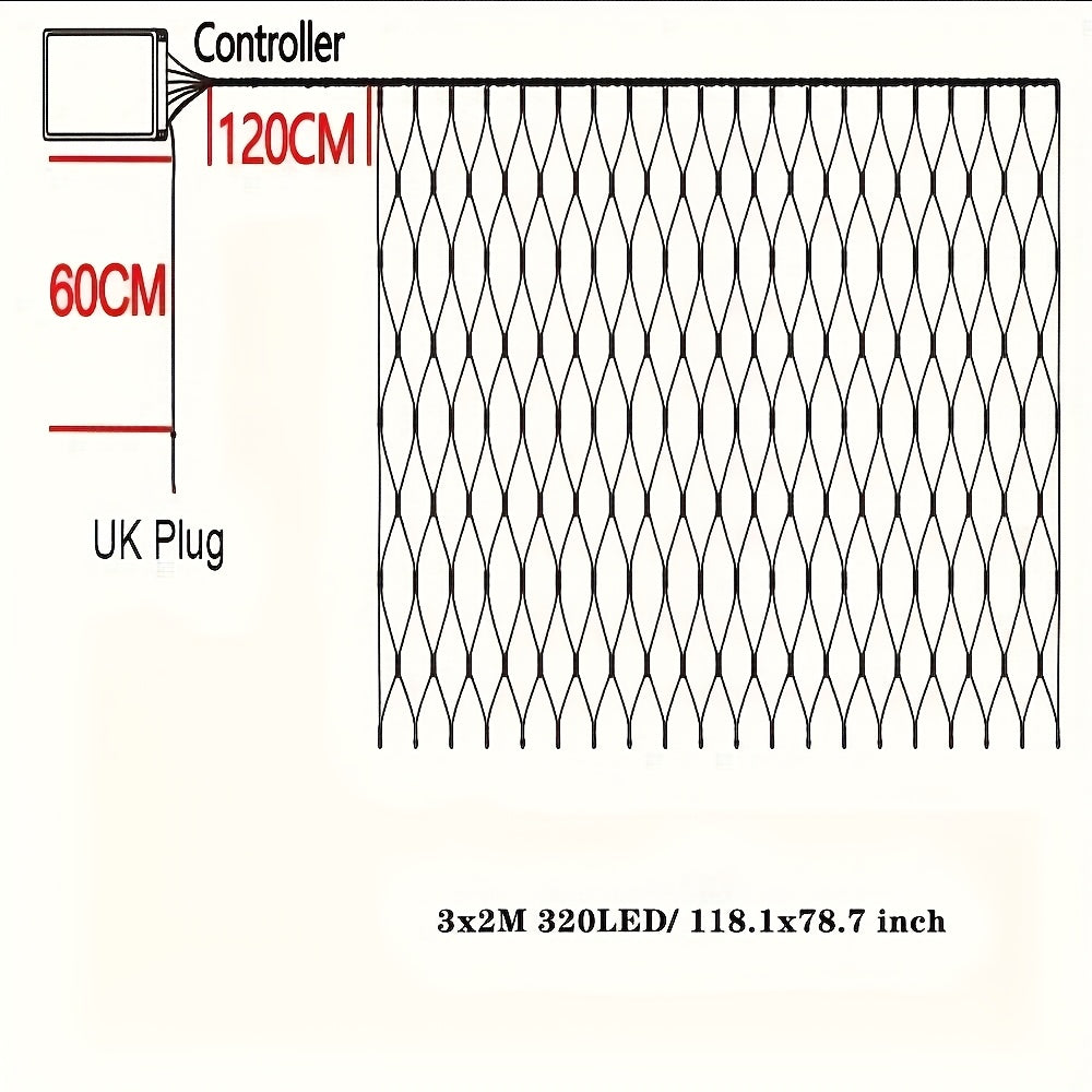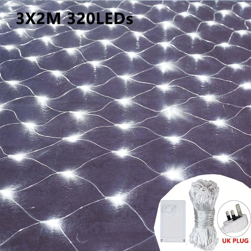 320 LED Net Mesh Lights 3x2m – 8 Modes Christmas Fairy Lights UK Plug