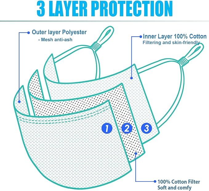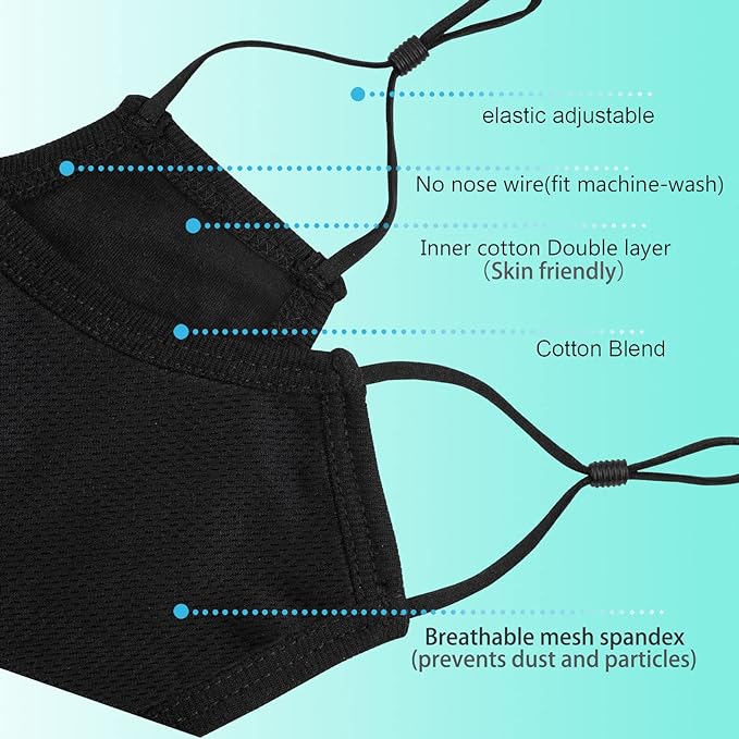 6 Pack Black Cotton Face Masks,Face Masks Washable,Reusable Face Mask,Face Covering,3-Layers Breathable Cloth Face Masks With Adjustable Ear Loops For Women Man (Meduim)