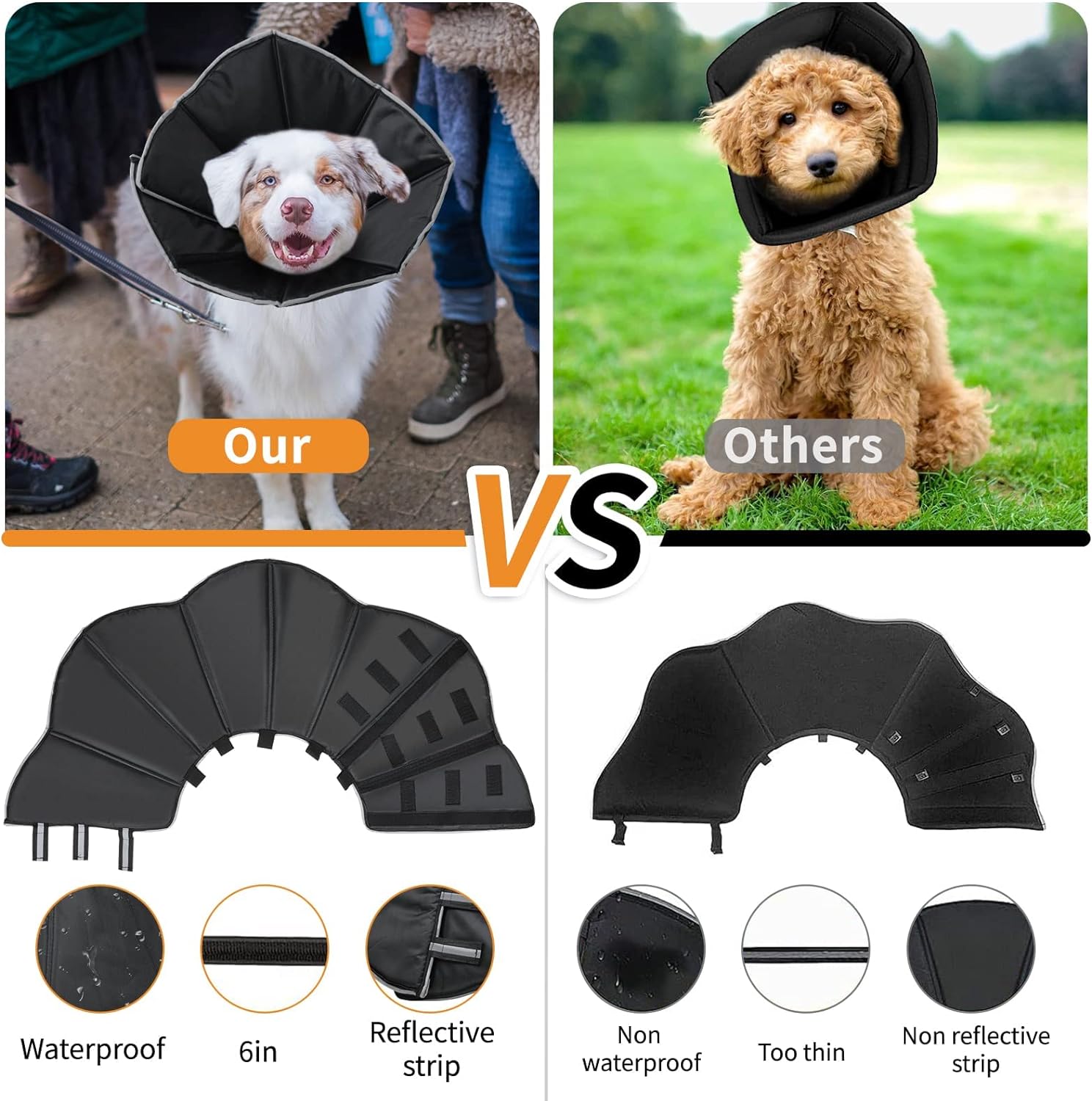 • ❤【Safe & Secure】This dog cone collar has fluorescent strip in the outer and inner rings for safe. Reflective straps keep your dog safe all the time while out for a walk. Adjustable Velcro let you create a custom fit for your dog. 20 years of veterinary use, designed to protect your pet from reaching injuries