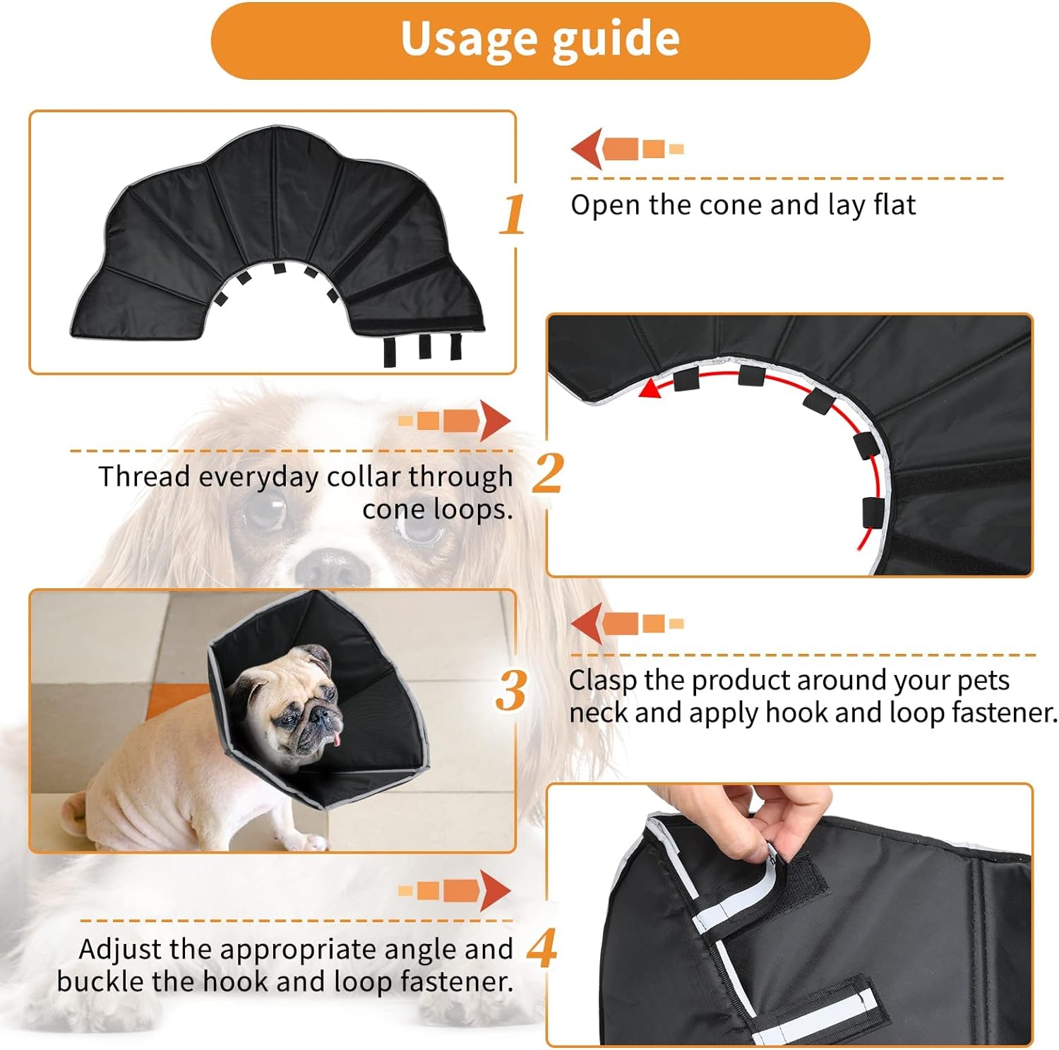 • ❤【Adjustable Protection Collar】Our dog cones are deep enough to prevent pets from licking. Upgraded adjustable ammonium buckle and velcro buckle are adopted to further strengthen the fixation of cone, prevent slipping down, and make pets enjoy the cone collar protection more comfortably and safely