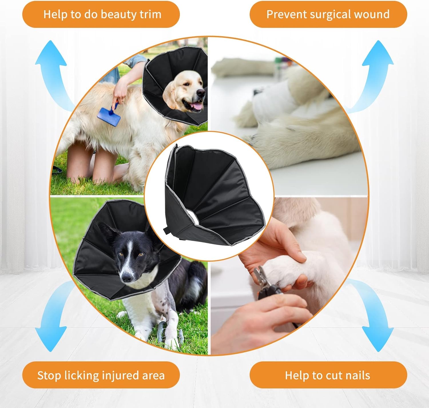 • ❤【Recommended By Vet】The dog cones is a safe and humane method of preventing animals from aggravating a healing wound or injury. The ergonomic soft dog cones after surgery can also be used for pet grooming, pet bathing, medical treatment and nail cutting. Suitable for most pets, like Golden Retriever, Labrador, Corgi, kinds of cats etc.