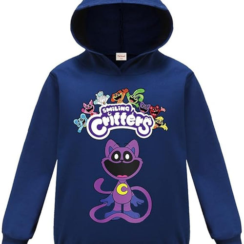 Forlcool Smiling Critters Hoodies for Boys Unisex Kids Cotton Sweatshirt Cartoon Printing Hooded Top (Navy Blue-a,7-8 Years)
