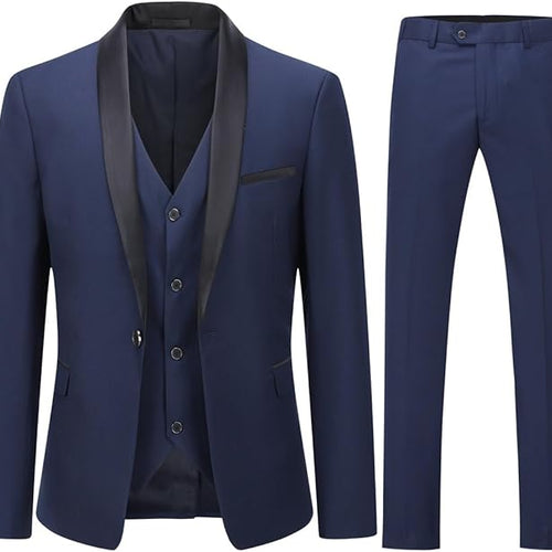 YOUTHUP Mens Suits Slim Fit 3 Piece Suit Shawl Lapel Wedding Dinner Tuxedo 1 Button Blazer Pants Vest, Dark Blue, S