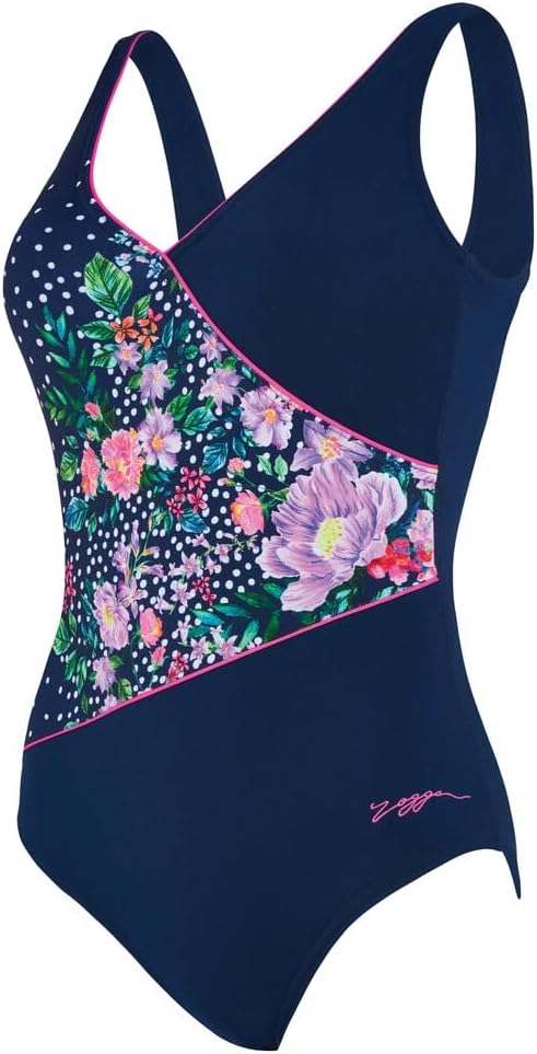 Zoggs Women's Wrap Front One Piece Swimsuit, Navy